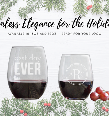 Celebrating | Personalized Stemless Wine Glass | Custom Engraved Favor