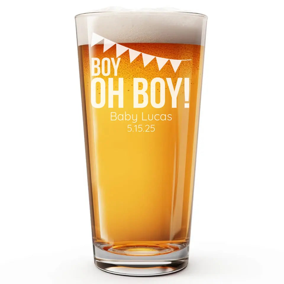 Boy oh Boy | Personalized 16 oz Pint Glass | Custom Engraved Favor