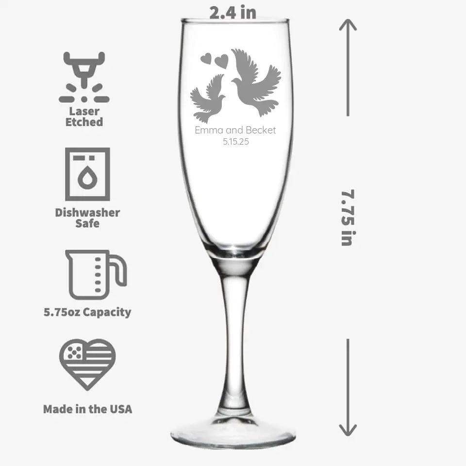 Doves | Personalized Champagne Flute | Custom Engraved Favor