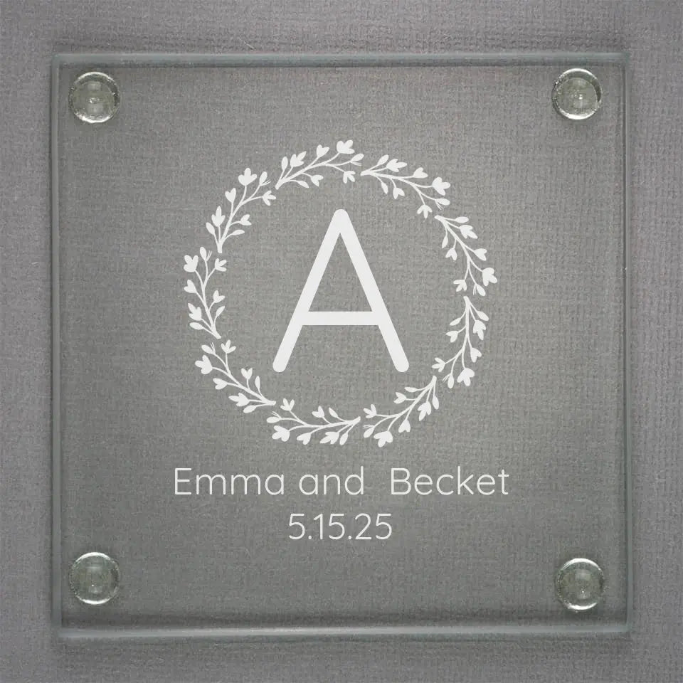 Floral | Personalized Glass Coaster | Custom Engraved Favor