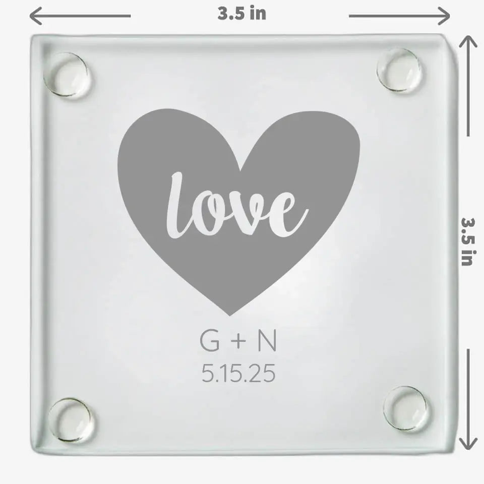 Love Heart | Personalized Glass Coaster | Custom Engraved Favor