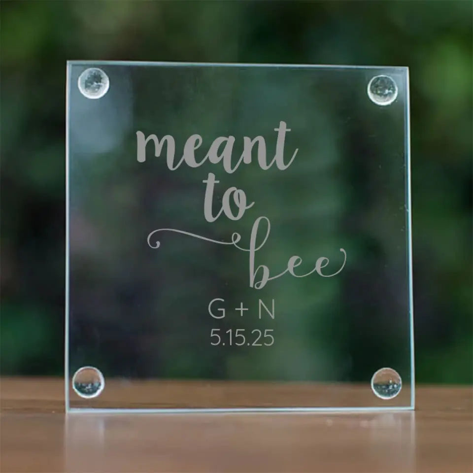 Meant to Bee | Personalized Glass Coaster | Custom Engraved Favor