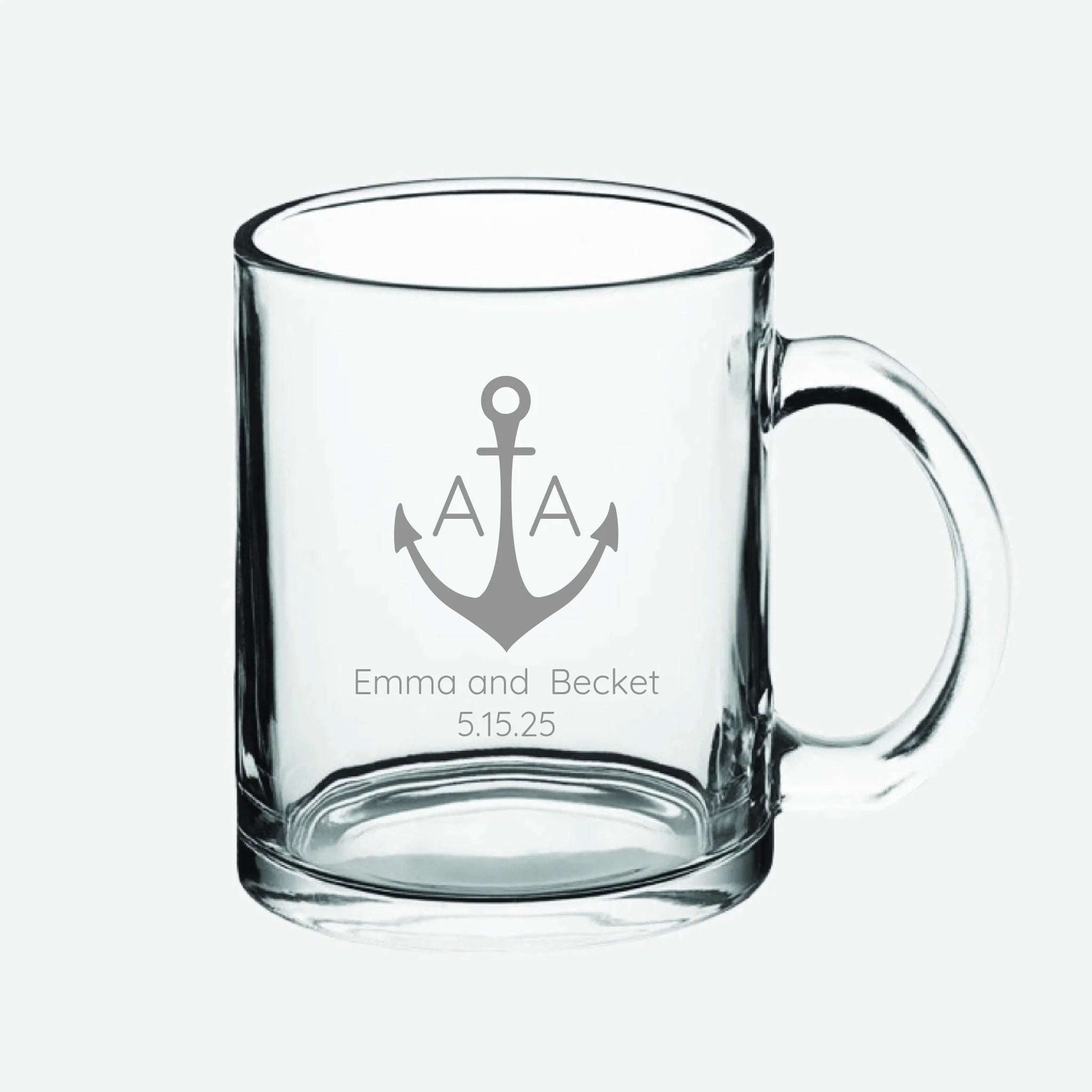 Anchor | Personalized 10 oz Glass Coffee Mug | Custom Engraved Favor