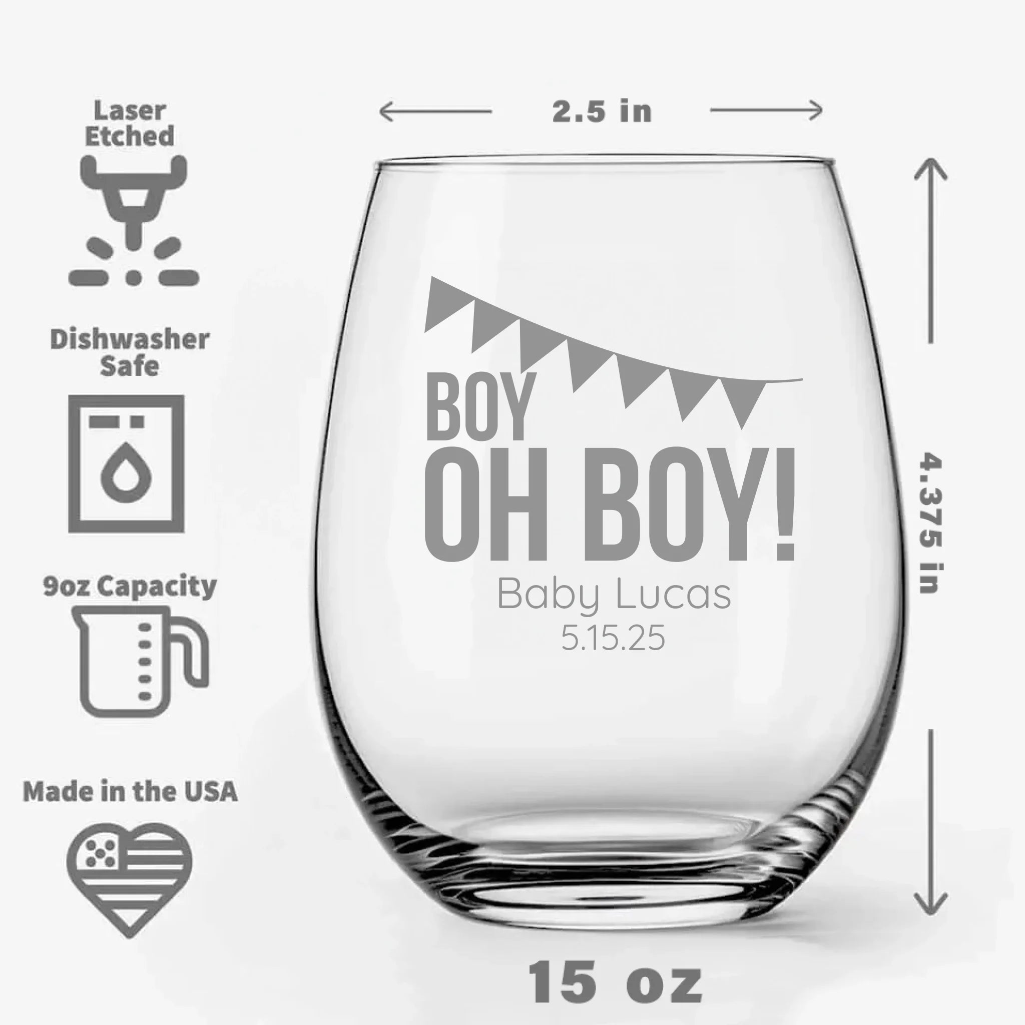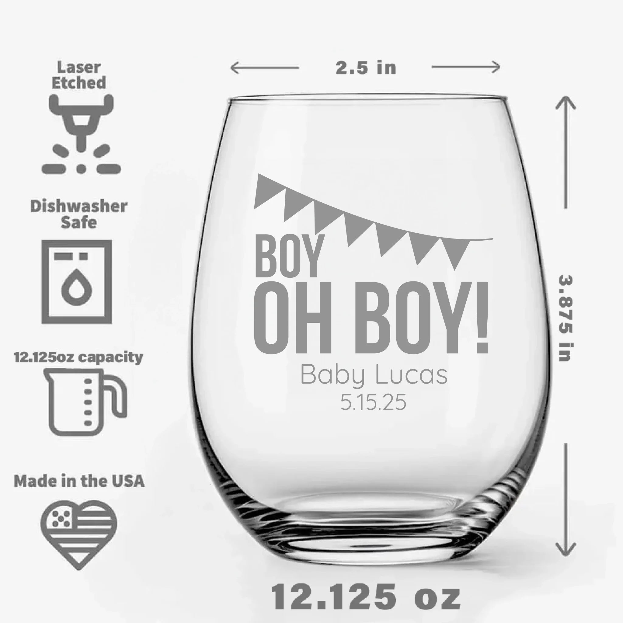Boy oh Boy | Personalized Stemless Wine Glass | Custom Engraved Favor