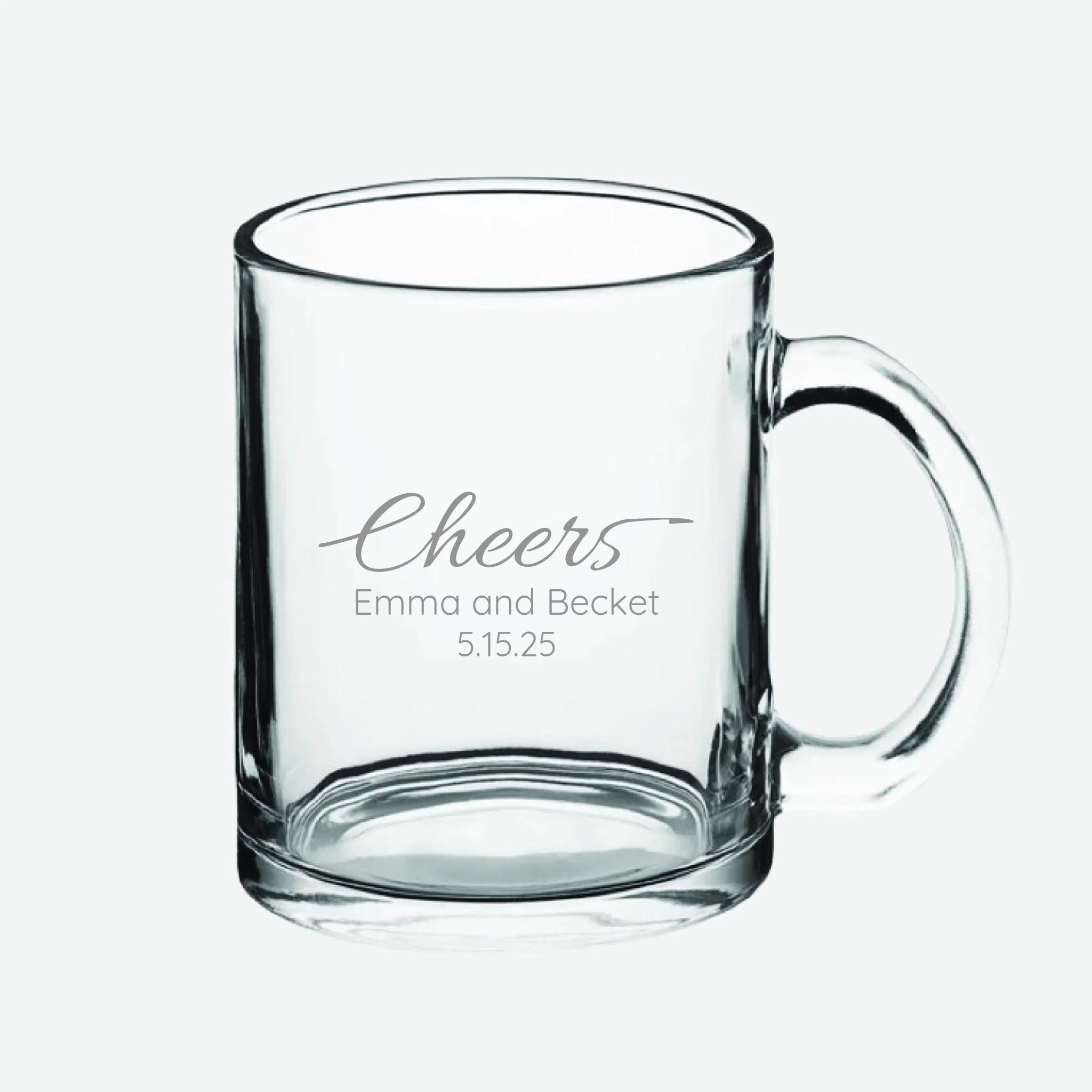 Cheers | Personalized 10 oz Glass Coffee Mug | Custom Engraved Favor