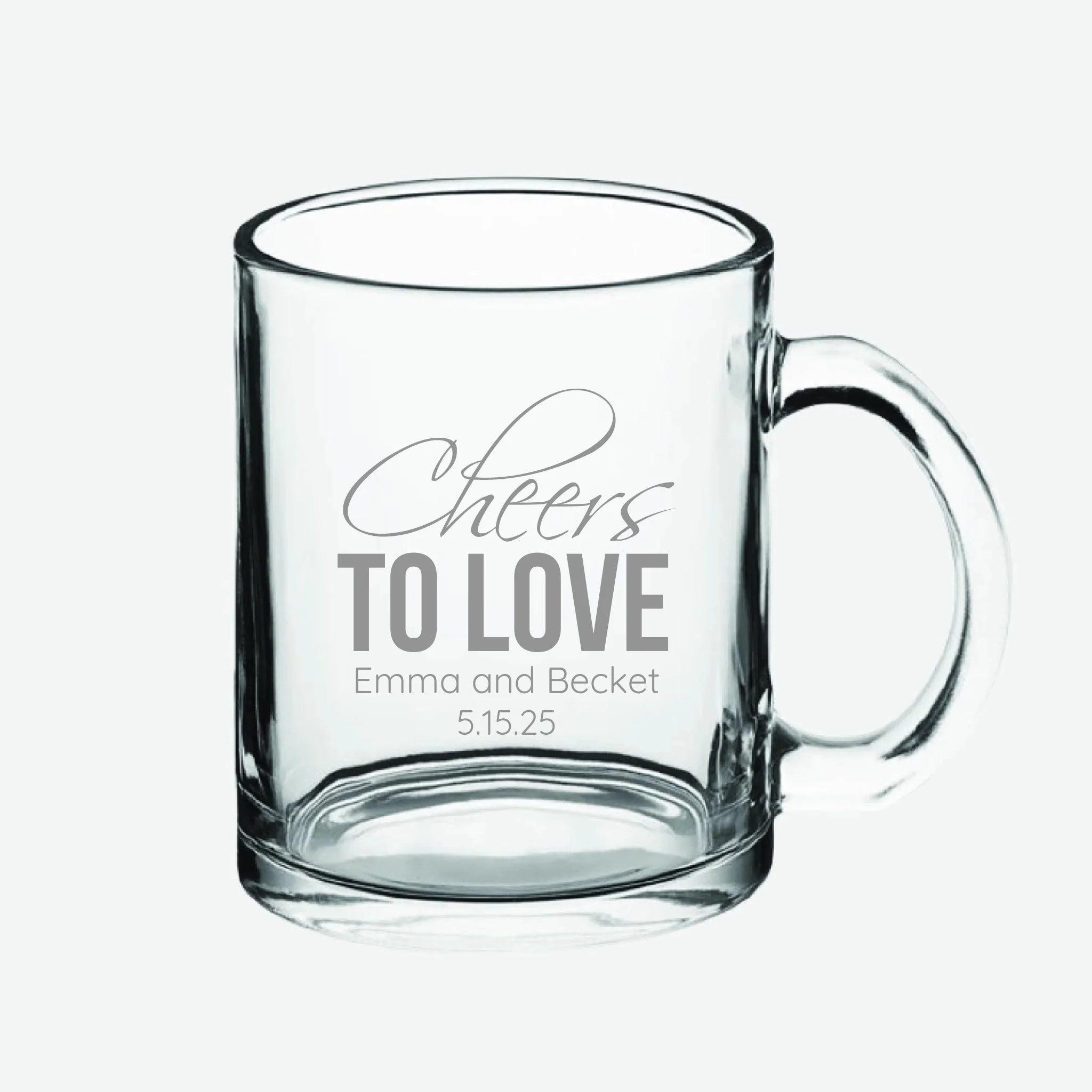 Cheers to Love | Personalized 10 oz Glass Coffee Mug | Custom Engraved Favor