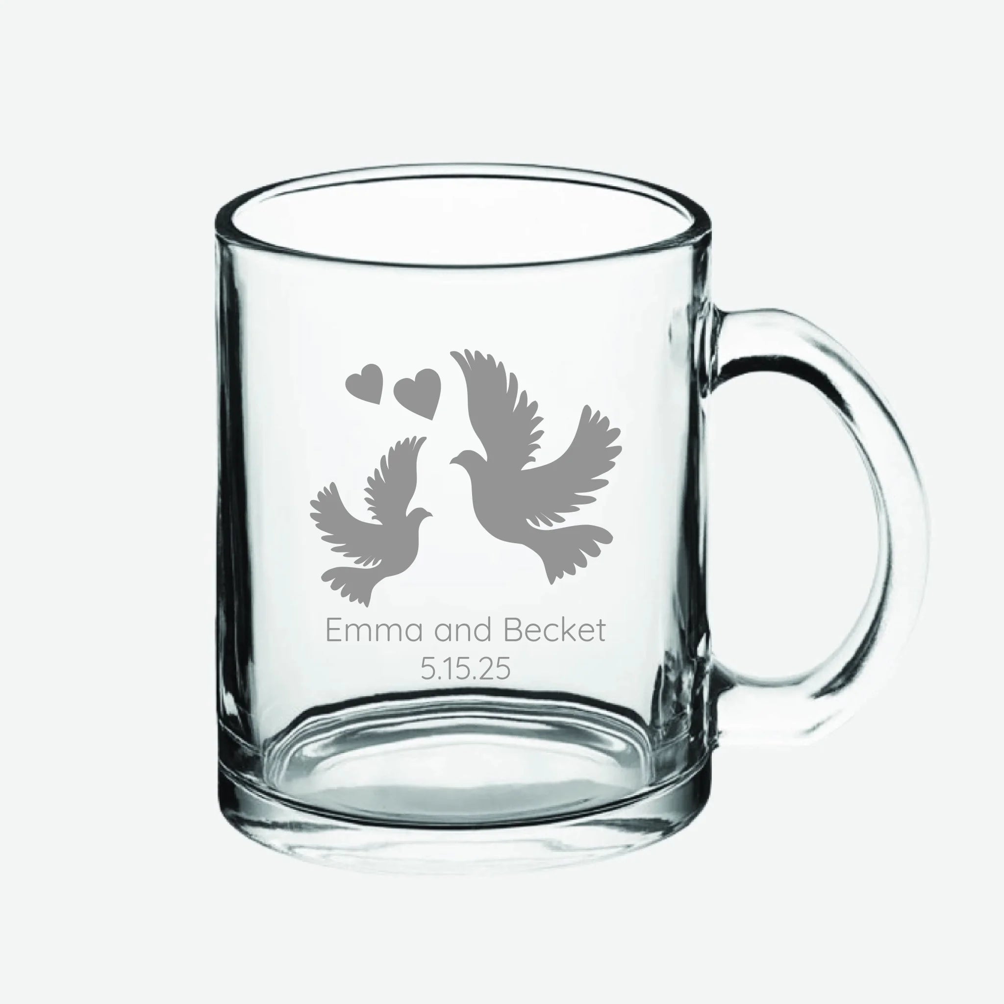 Doves | Personalized 10 oz Glass Coffee Mug | Custom Engraved Favor