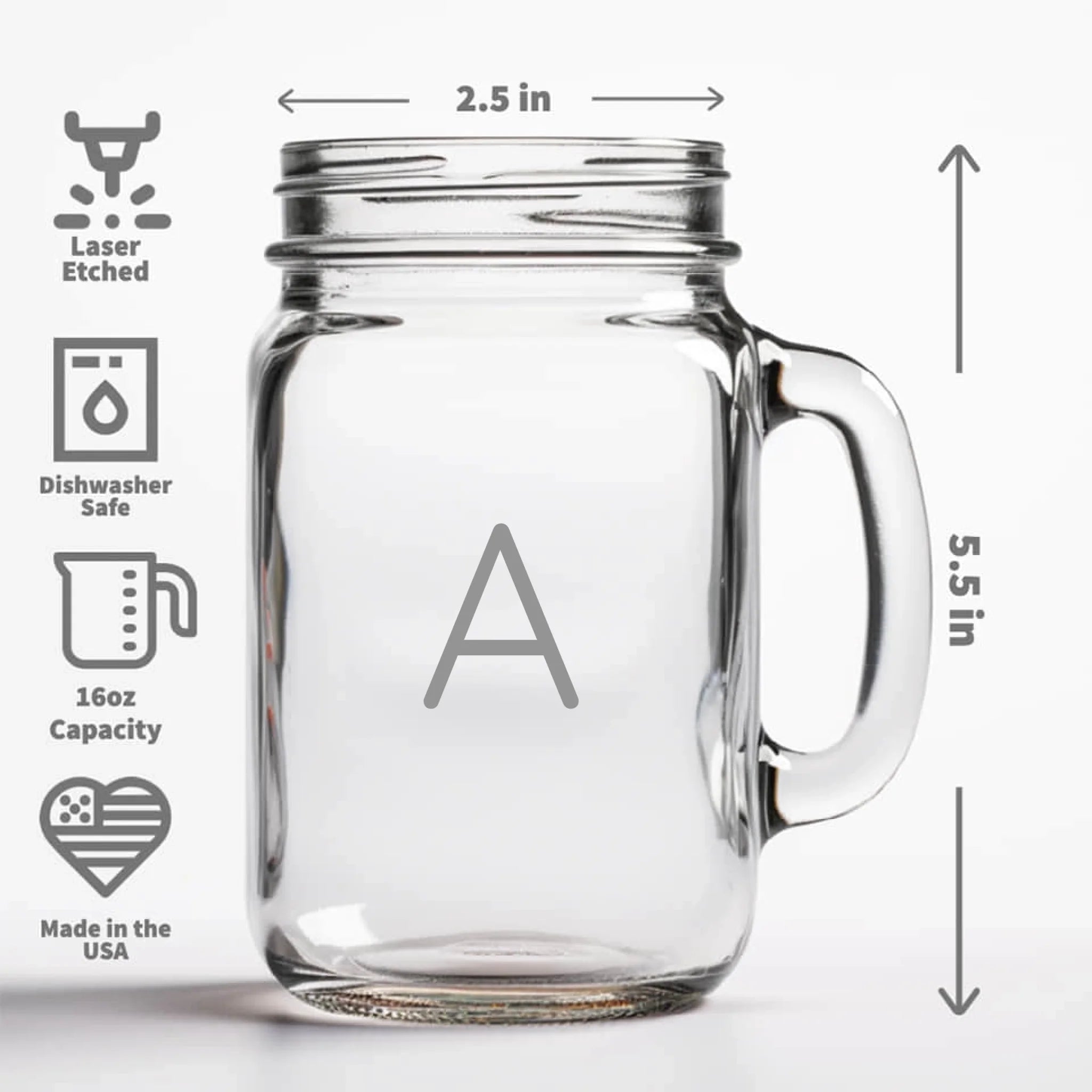 Add a rustic yet modern touch to your celebrations with this etched, laser-engraved mason jar mug. Crafted from high-quality, durable glass, this 16 oz mug is perfect for personalized gifts, party favors, or commemorating special events. Its charming design combined with custom engraving makes every sip memorable.