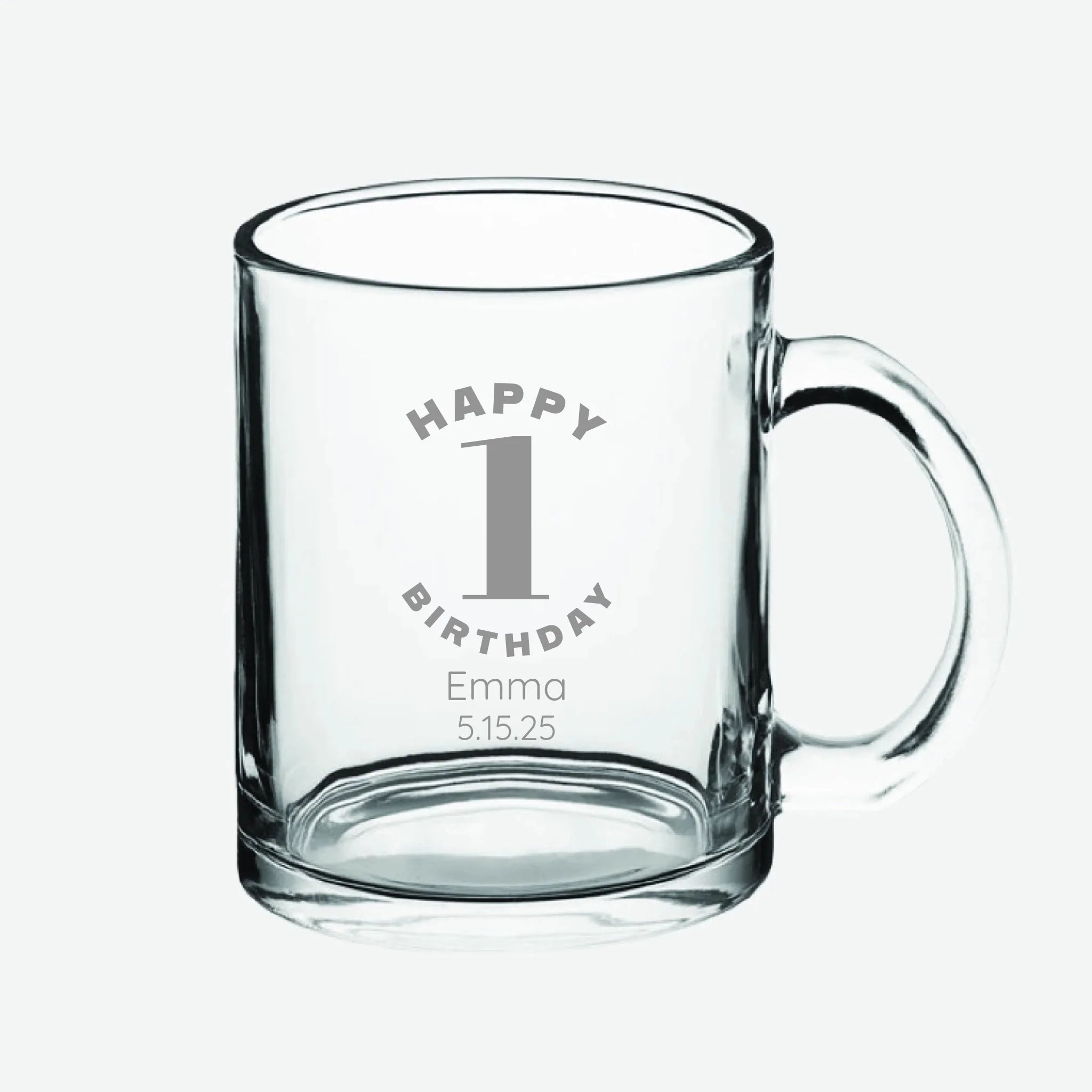 Happy Birthday | Personalized 10 oz Glass Coffee Mug | Custom Engraved Favor