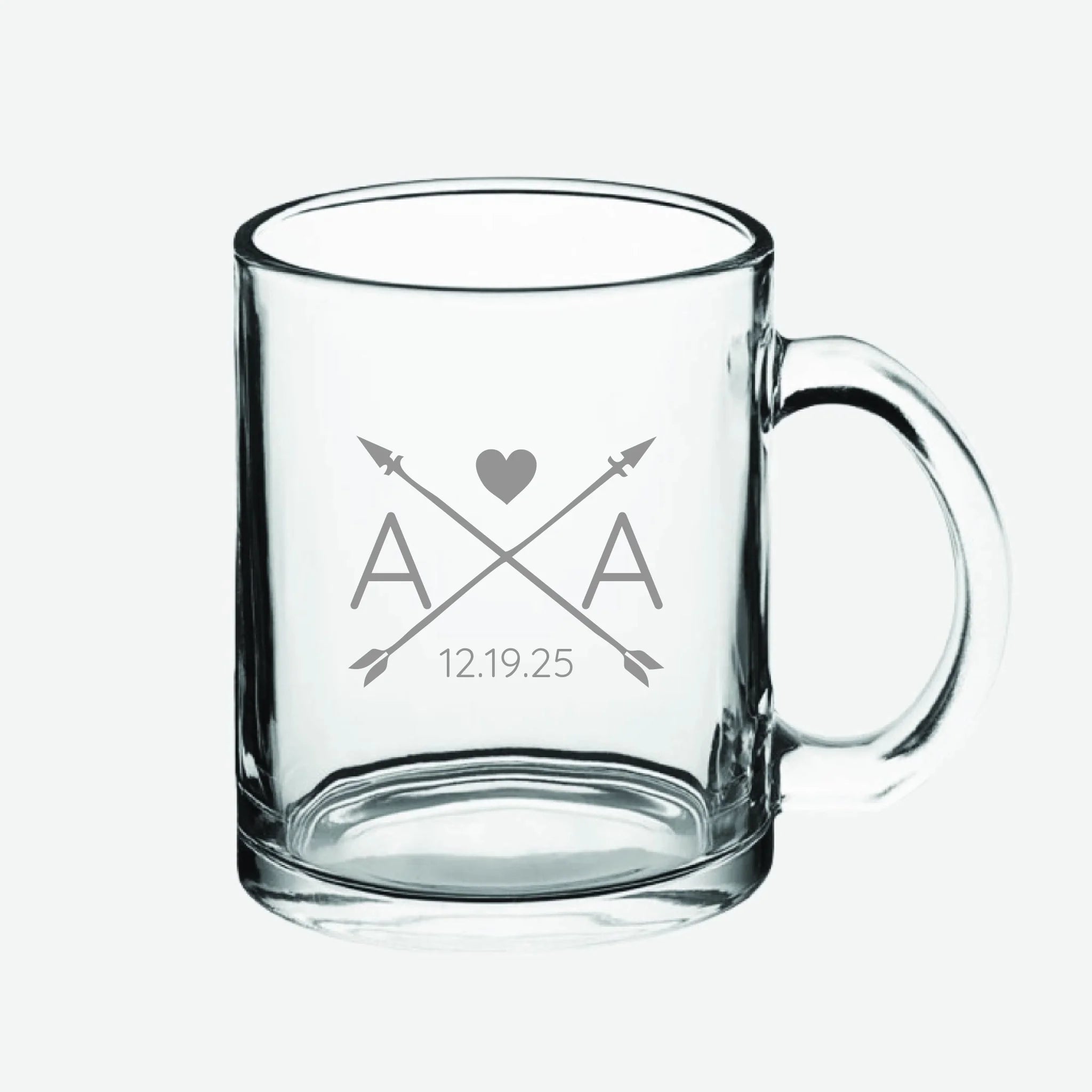Heart Arrows | Personalized 10 oz Glass Coffee Mug | Custom Engraved Favor