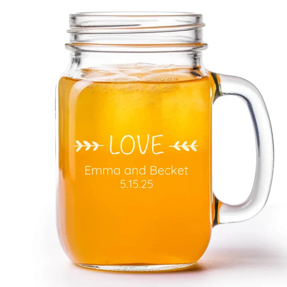 Love | Personalized 16 oz Mason Jar Mug | Custom Engraved Favor