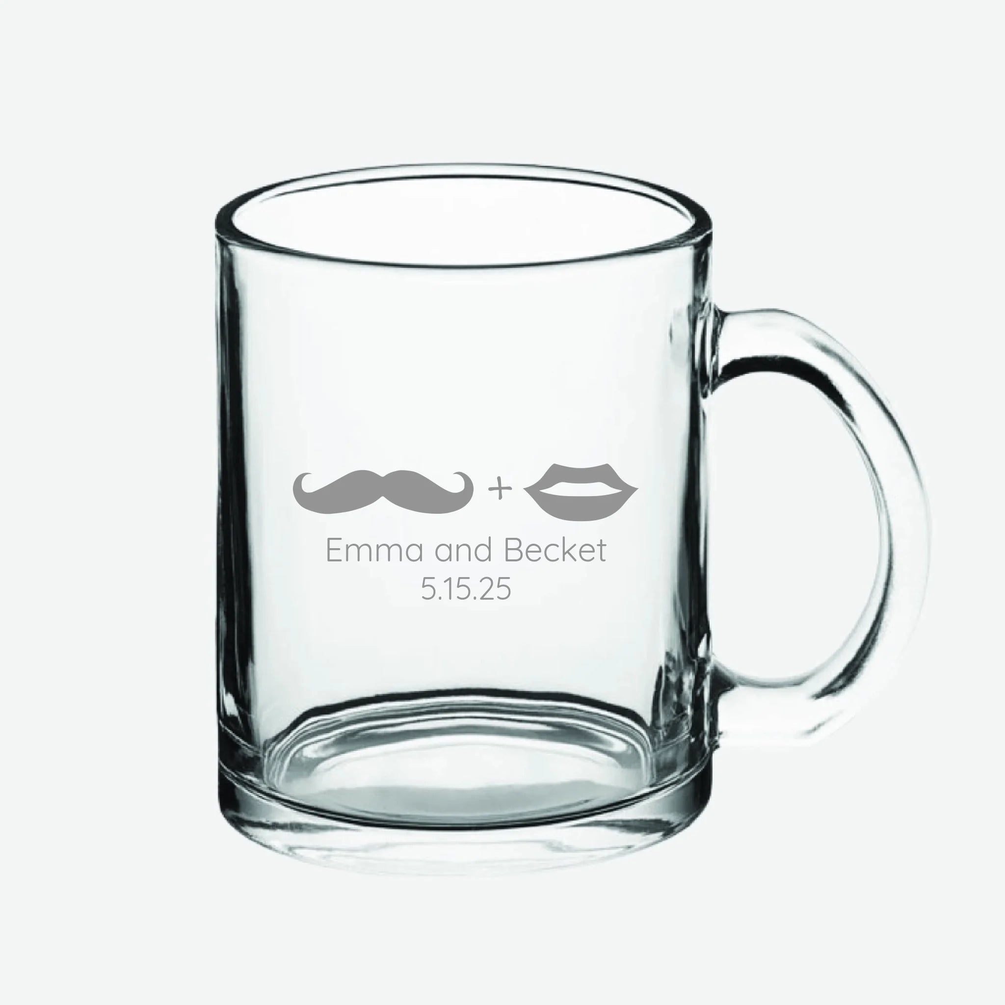 Mustache & Lips | Personalized 10 oz Glass Coffee Mug | Custom Engraved Favor