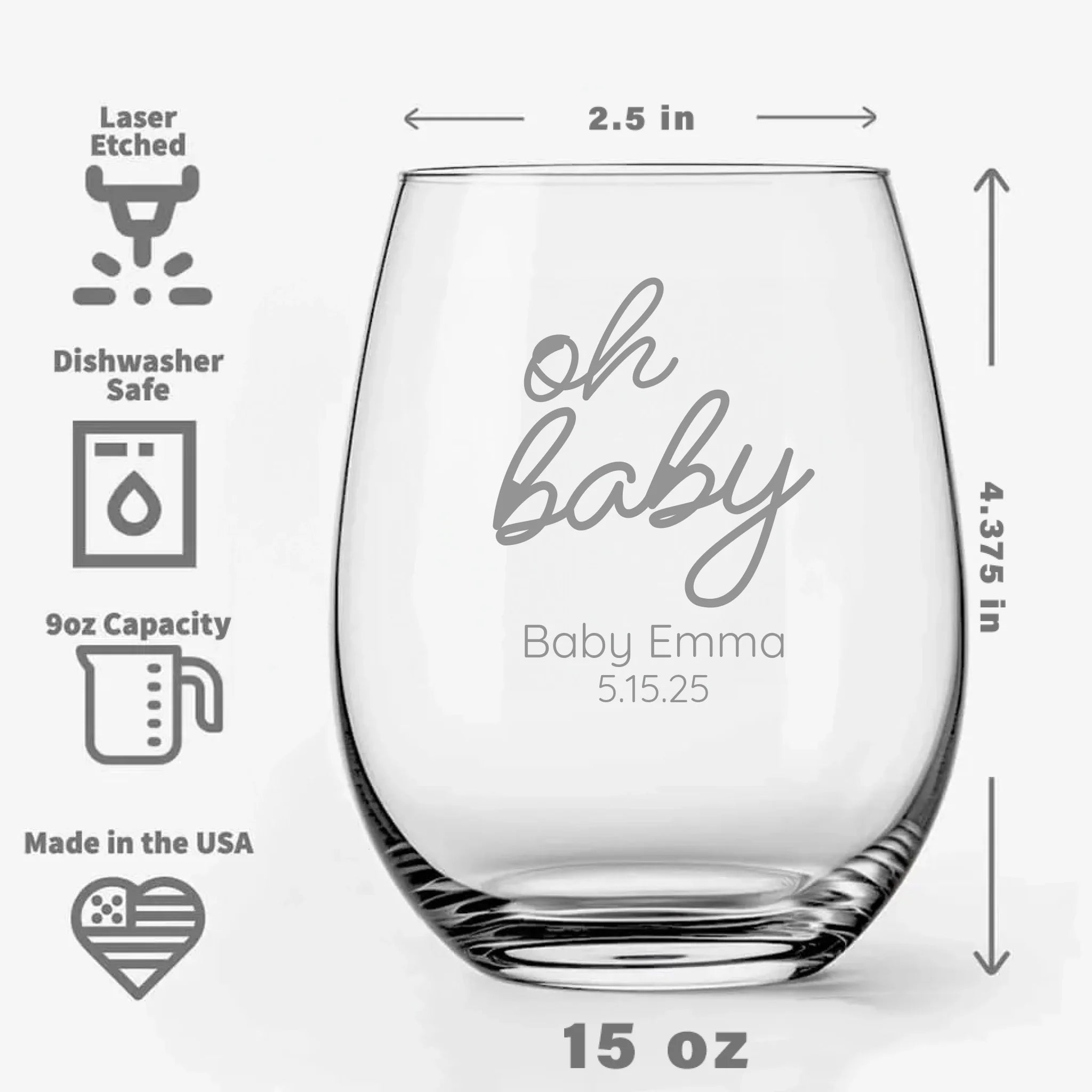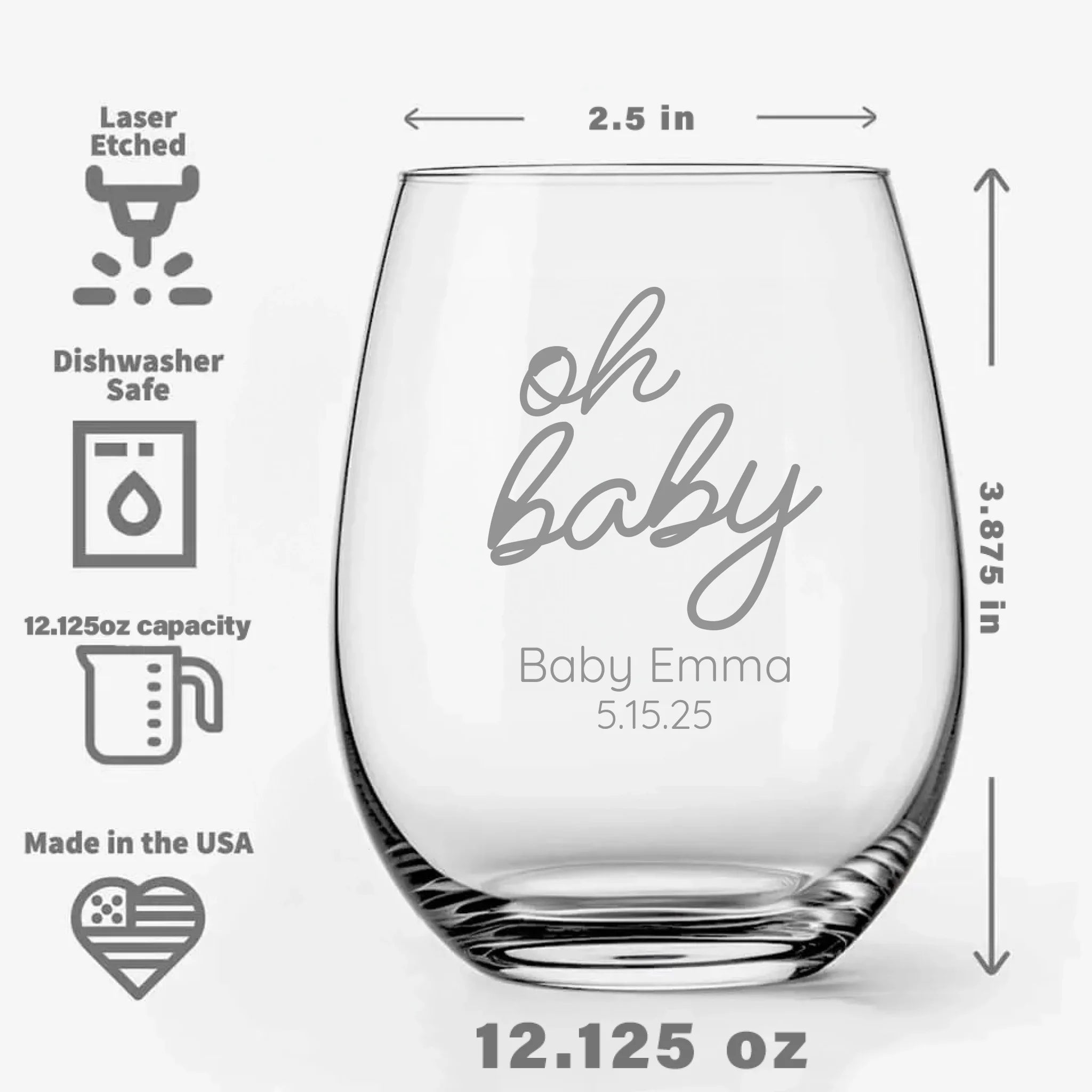 Oh Baby | Personalized Stemless Wine Glass | Custom Engraved Favor