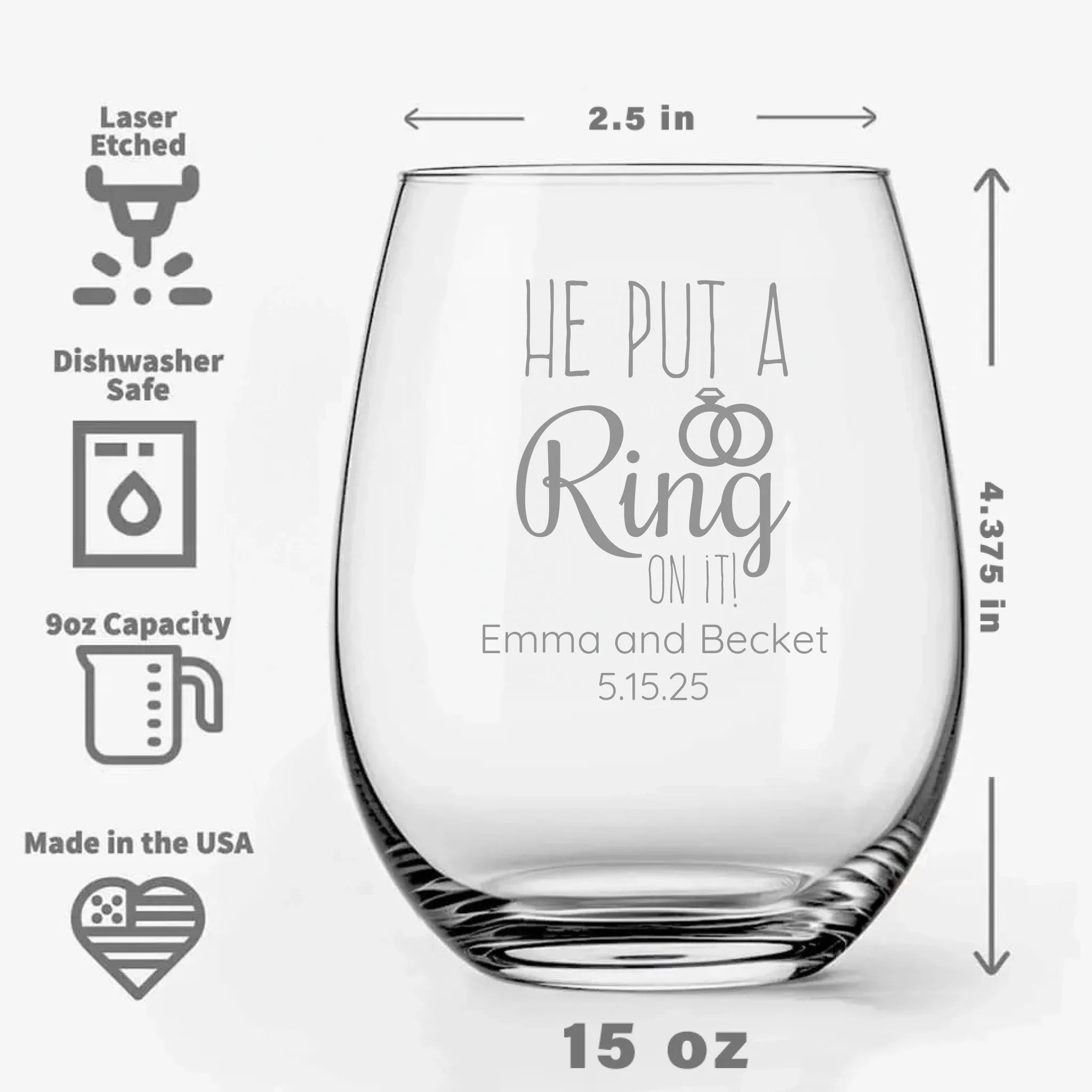Ring on it | Personalized Stemless Wine Glass | Custom Engraved Favor