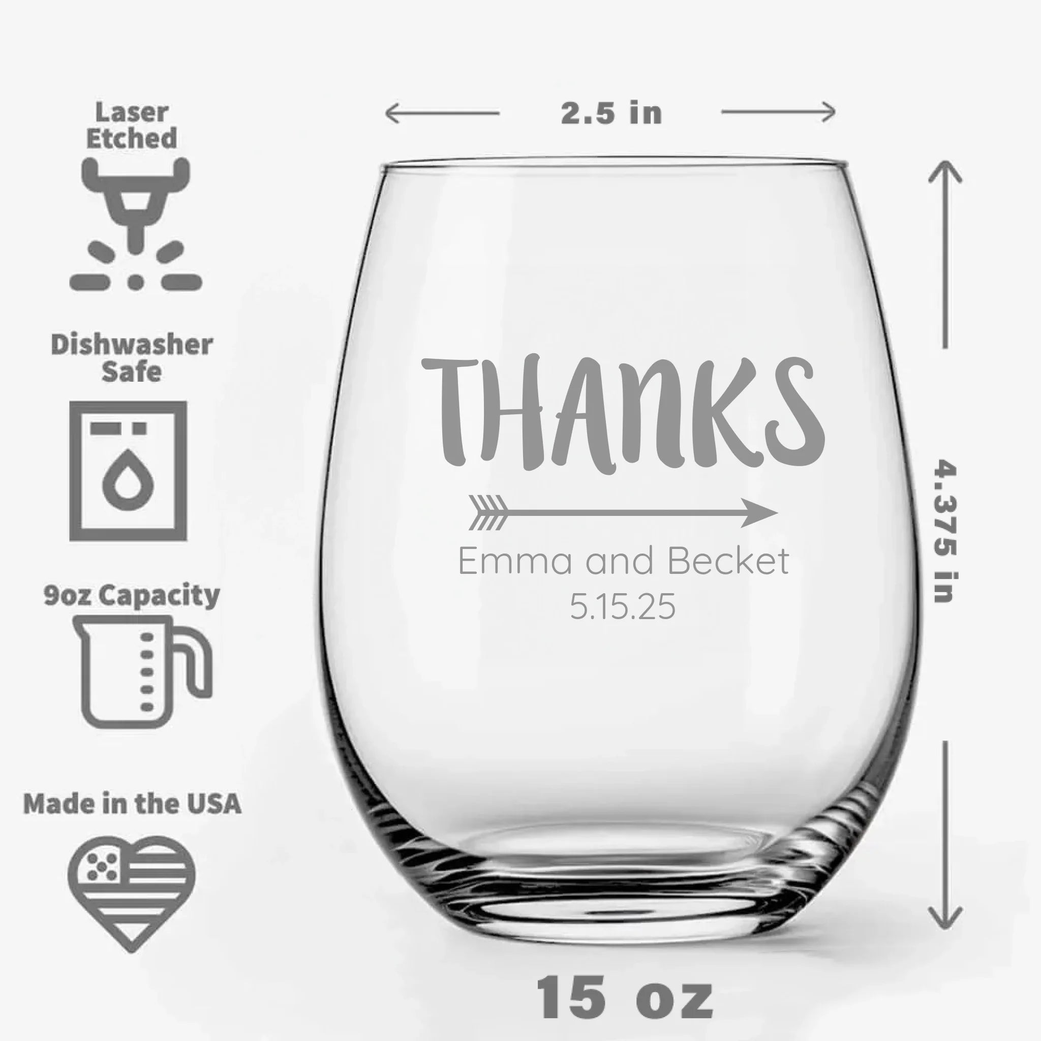 Thanks | Personalized Stemless Wine Glass | Custom Engraved Favor