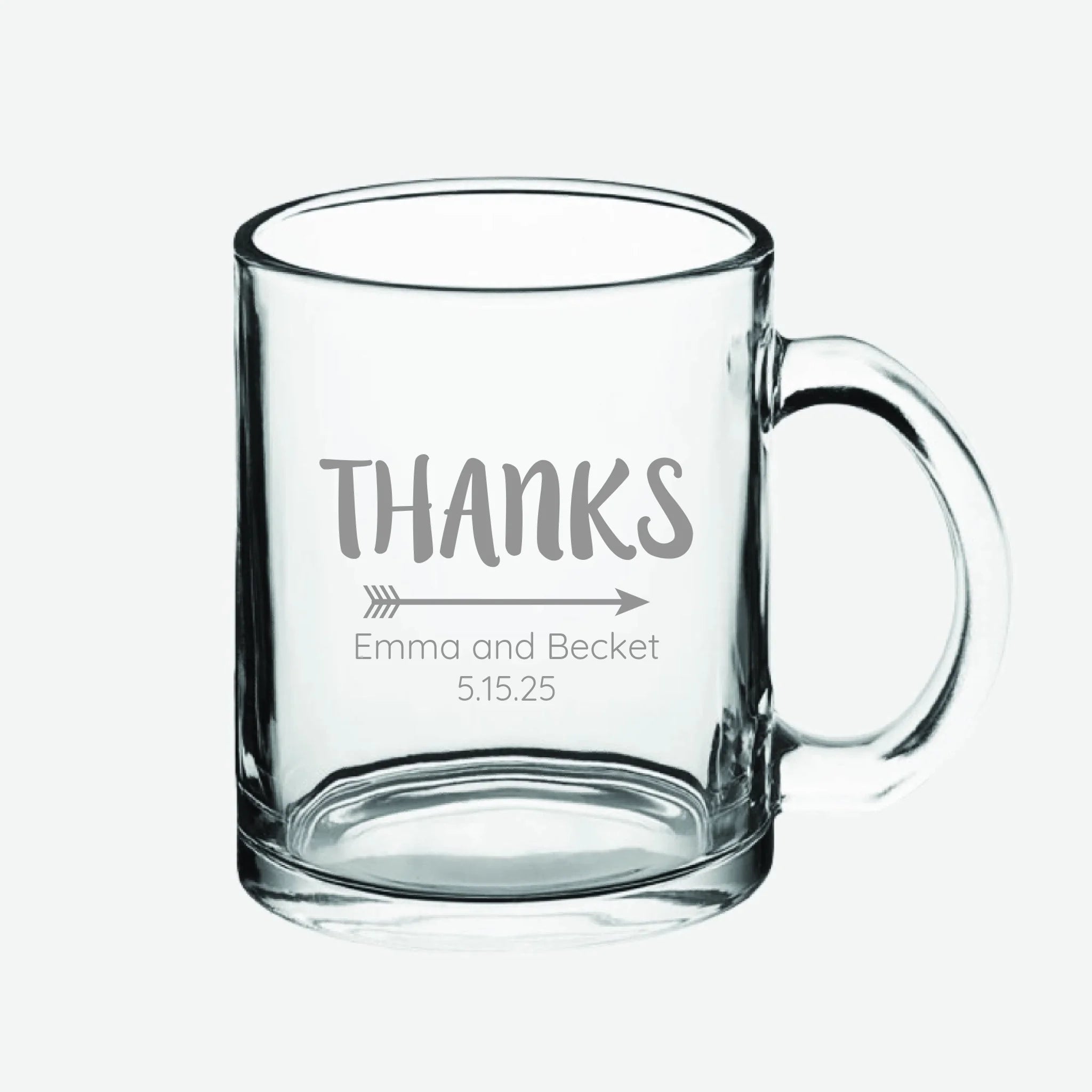 Thanks | Personalized 10 oz Glass Coffee Mug | Custom Engraved Favor