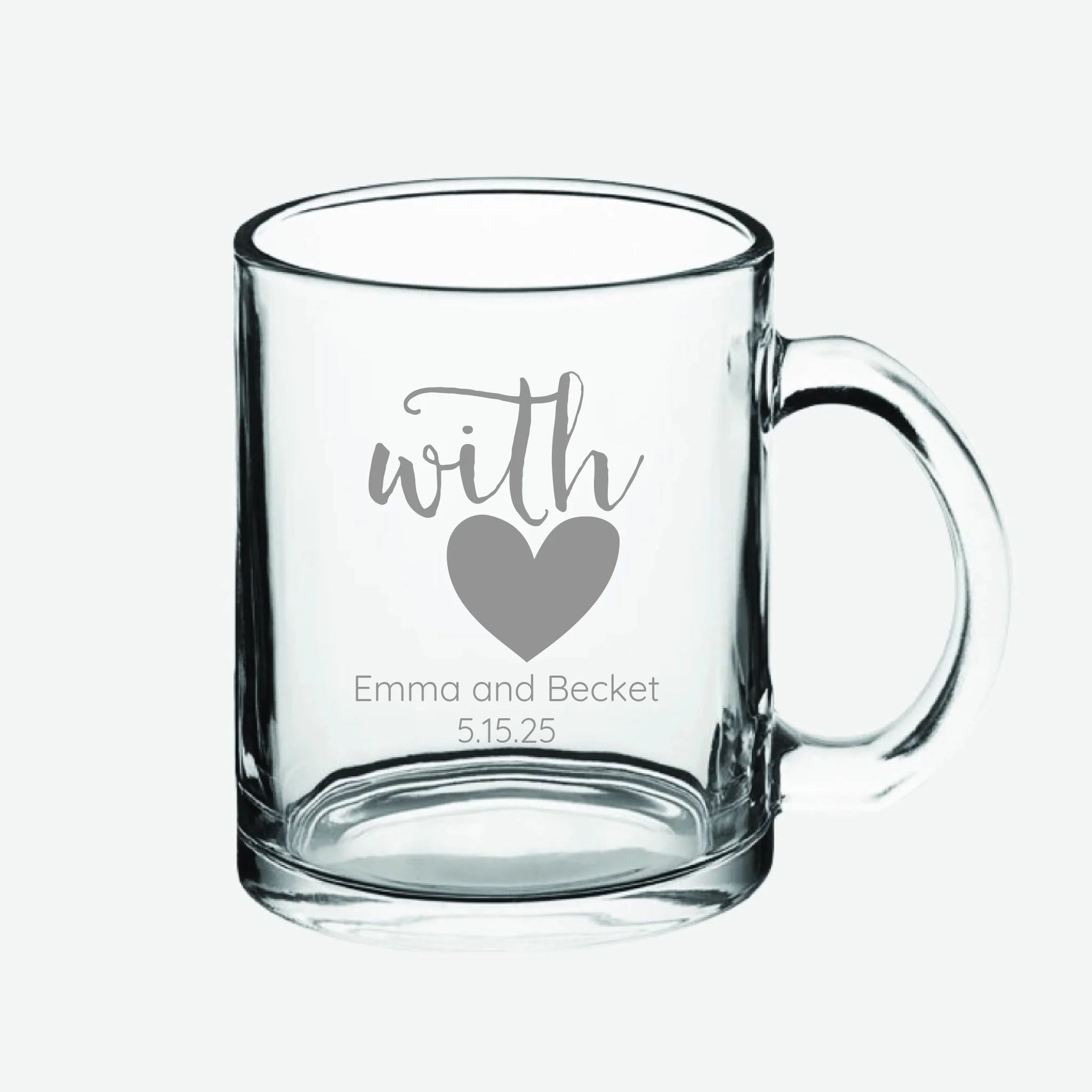 With Heart | Personalized 10 oz Glass Coffee Mug | Custom Engraved Favor